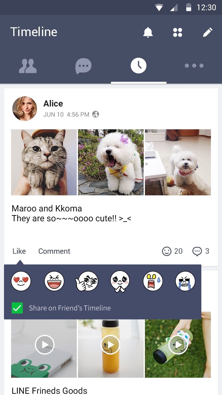 LINE version 5.0.0 was released today on Android, and brings with it the option to share Timeline posts publically. When you share or like posts that are set to public, you can also share them with your friends on your Timeline!